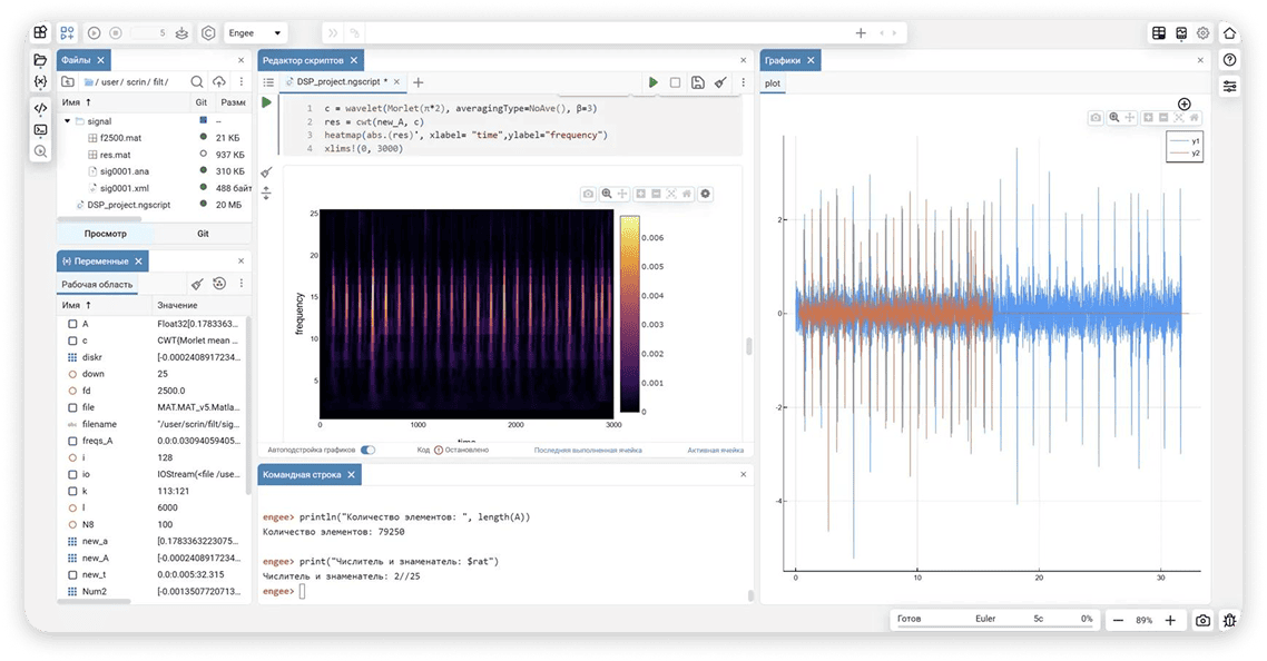 Этюд глубоко интегрирован с российской платформой математических вычислений и динамического моделирования Engee.