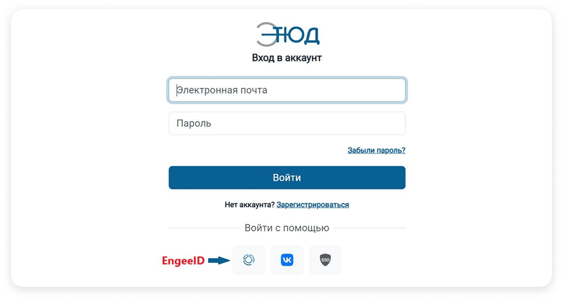 Учётную запись Engee можно использовать для входа в личный кабинет Этюд без регистрации.