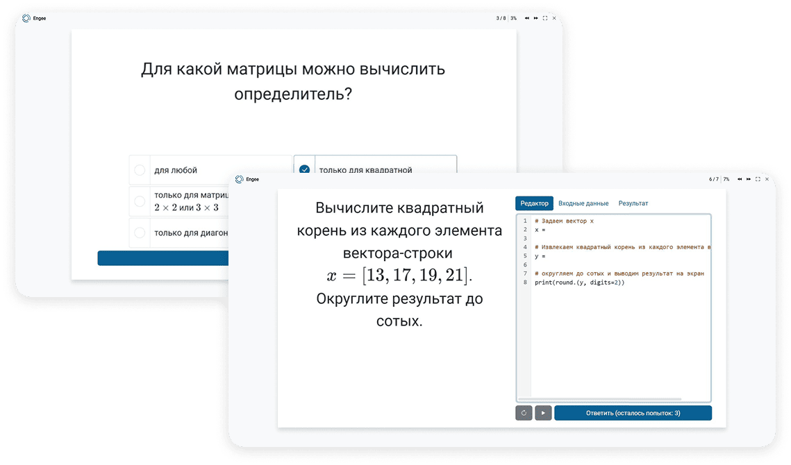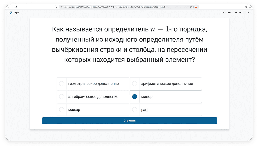 Модуль проверки знаний оформлен в стиле Engee и работает на выделенном домене.