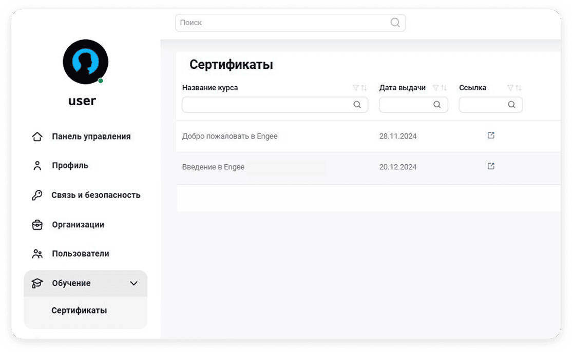 При успешном окончании курса Engee полученный сертификат доступен в личном кабинете Этюд и в личном кабинете Engee.
