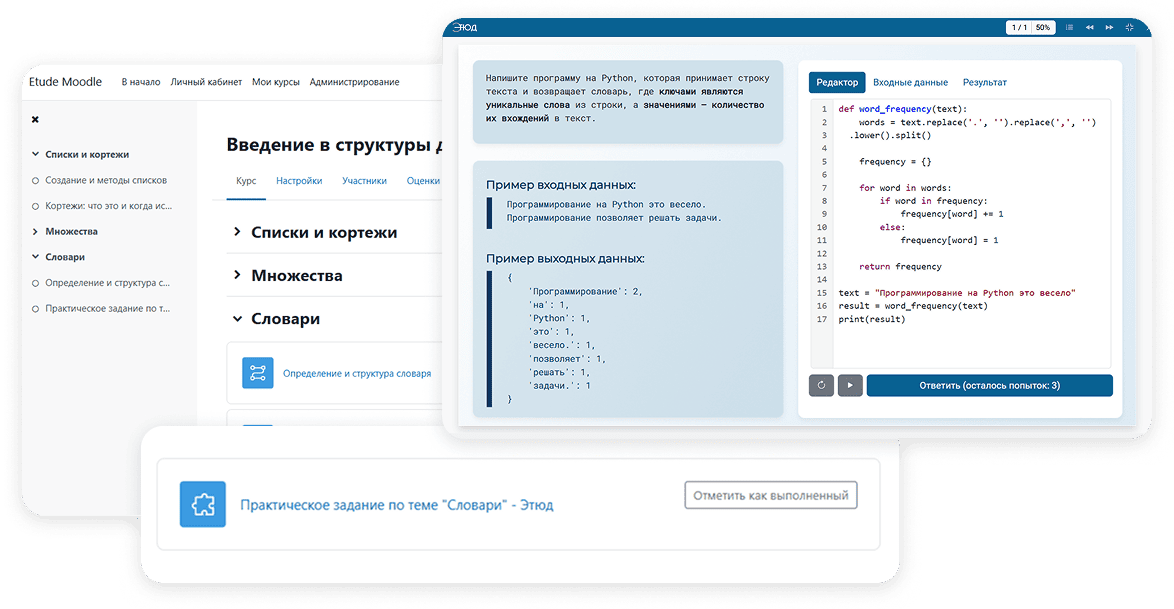 Используете ли вы Moodle, Blackboard или Open edX – Этюд поддерживает работу с ними. Это обеспечивает легкий доступ, бесшовную интеграцию и упрощает административную работу для преподавателей.